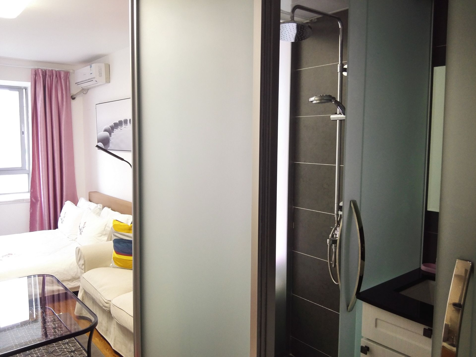 公寓位于上海市中心区域,在江宁路和繁华的长寿路交界处,出行非常方便,与13号线江宁路站零距离,周边200米内有4个公交站。周边商场林立,有巴黎春天,长寿路189购物广场,亚新生活广场,各类餐馆涵盖早,中,晚餐,同时以夜宵最为出众,喜爱美食的老饕们千万不要错过。该房间位于公寓楼9楼,整栋公寓楼总共为23层,公寓楼安保设施齐全,24小时保安,楼道内拥有无死角高清摄像头,居住环境安全性非常高。