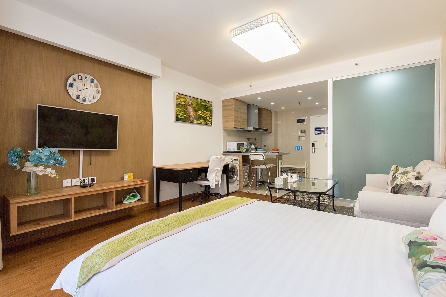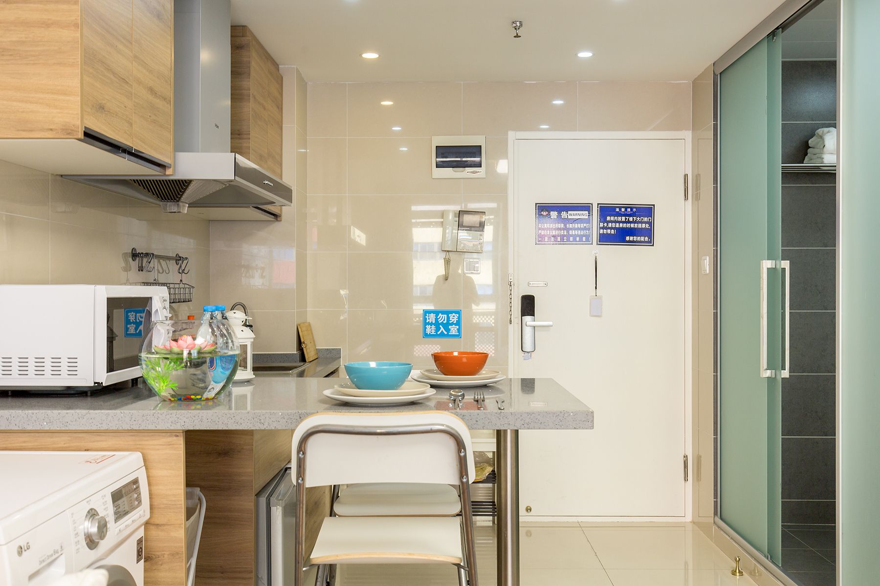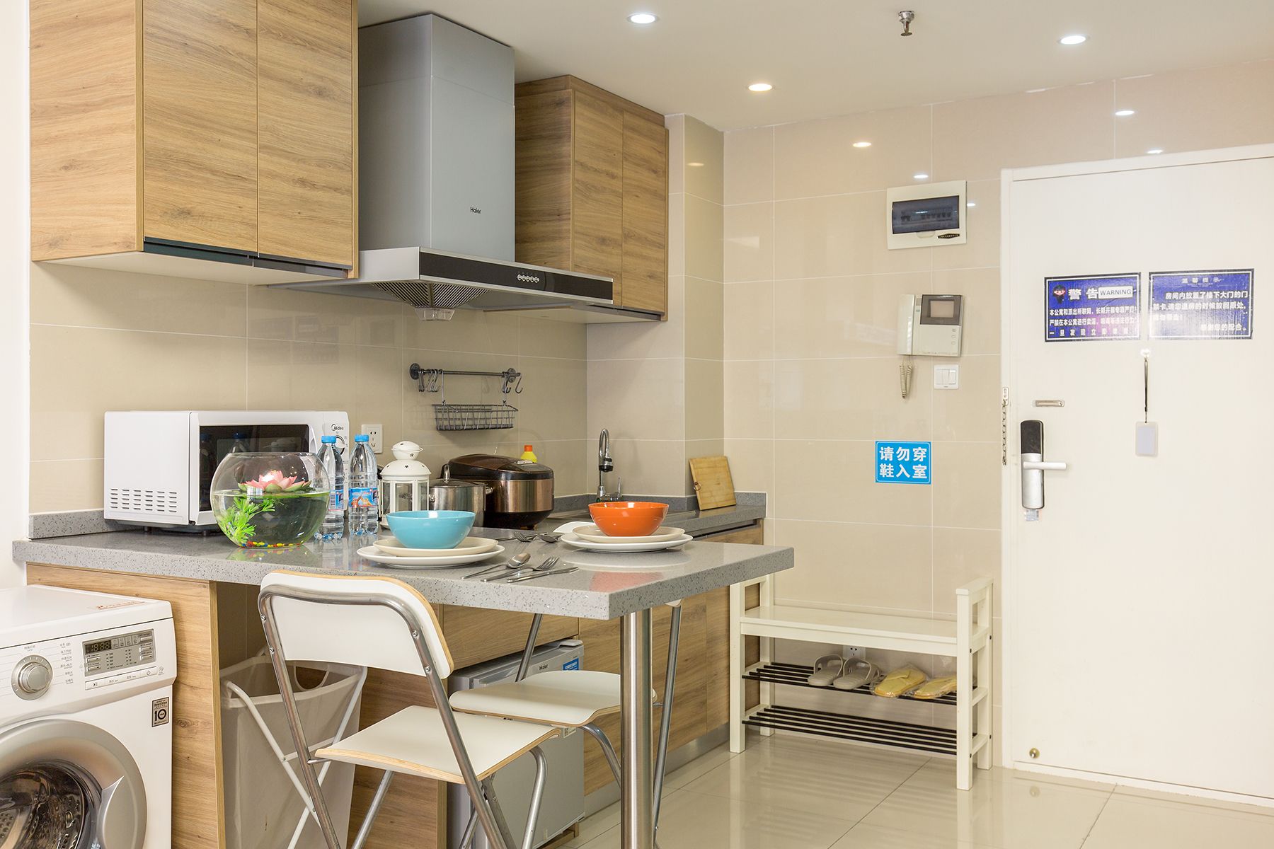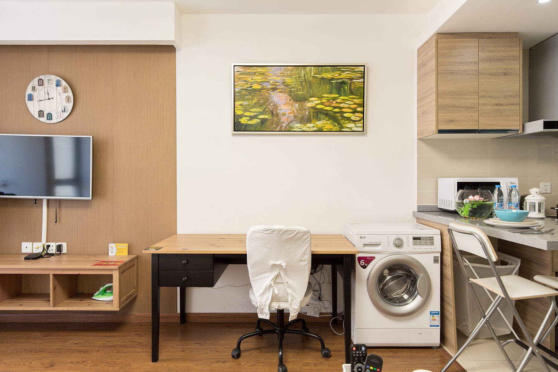 整个房间以简约为主题,在释放整个房间的空间感的同时,配备了必要的生活用品,包括一张双人床,一个简易的衣柜,书桌,茶几等,房间是独立的卫生间。当然还包括一个多功能厨房,可以在其中制作简单的午餐或者早餐。屋内还配置了洗衣机以及晾衣杆,能够满足您基本的生活所需,不论您是商务出差,还是在这附近生活,都非常便利。该房间非常适合独自一人,年轻的情侣居住。