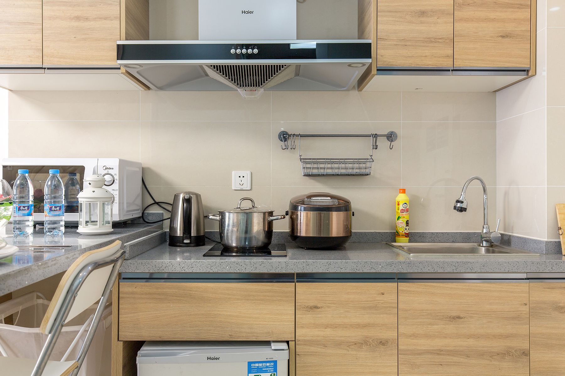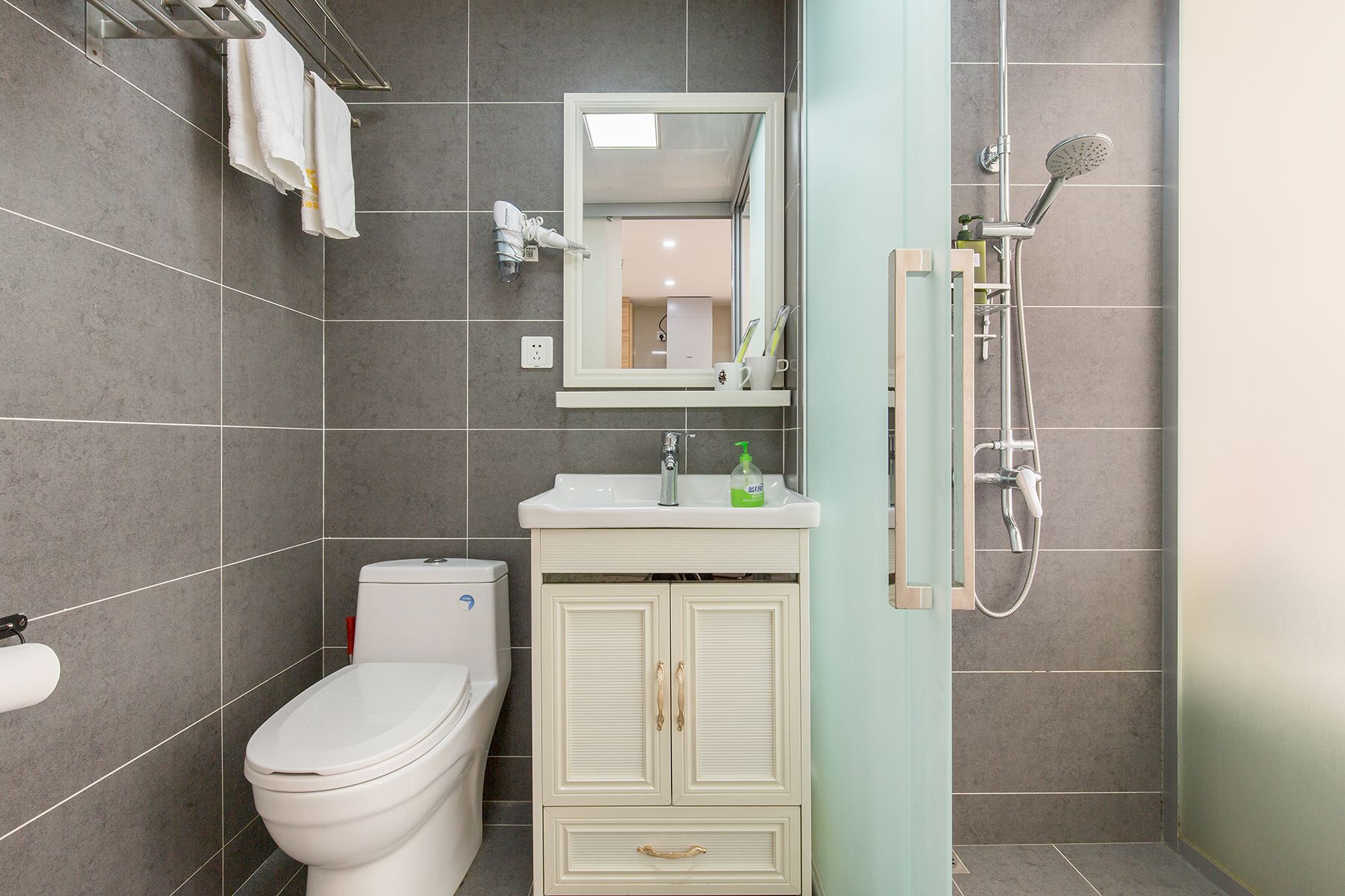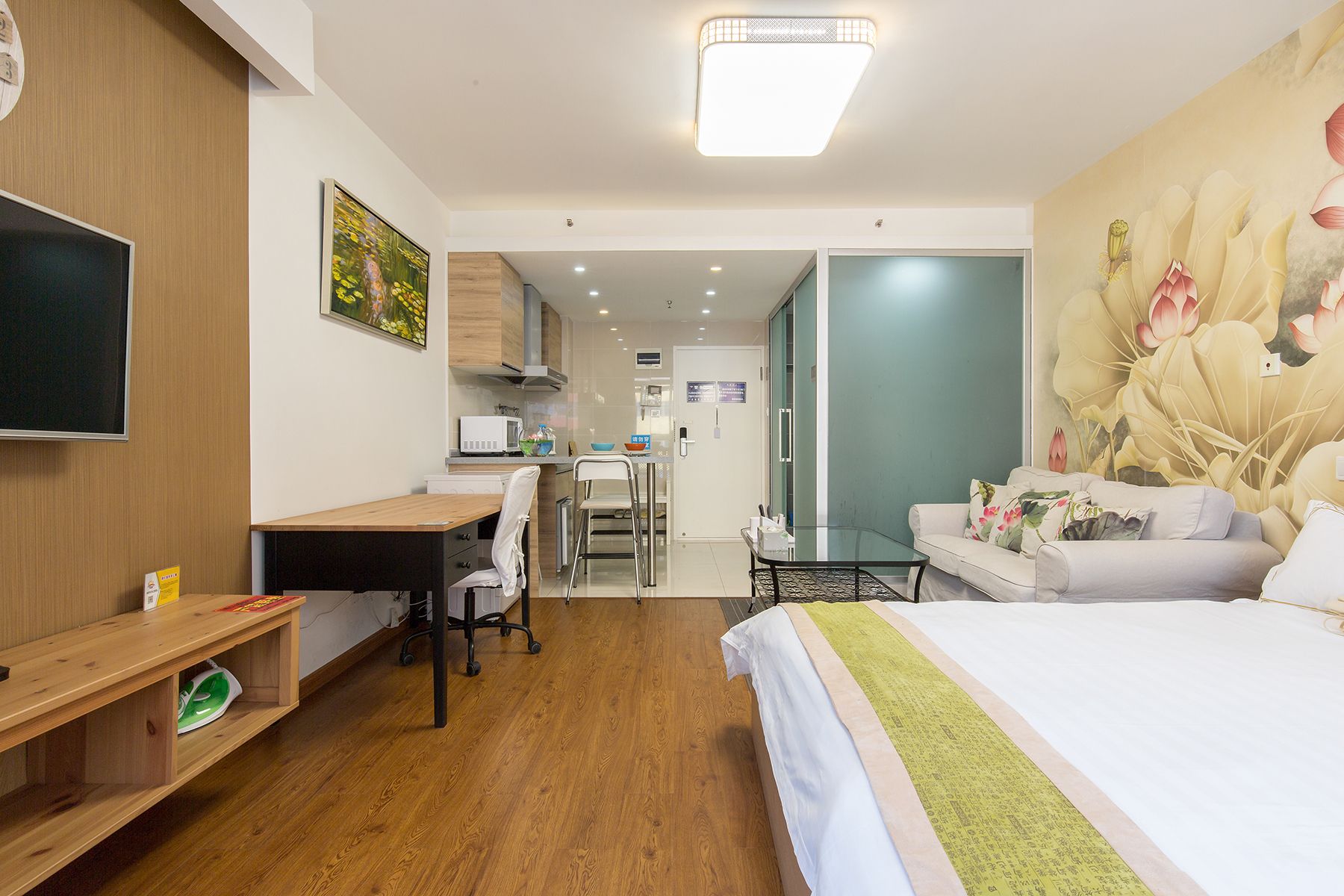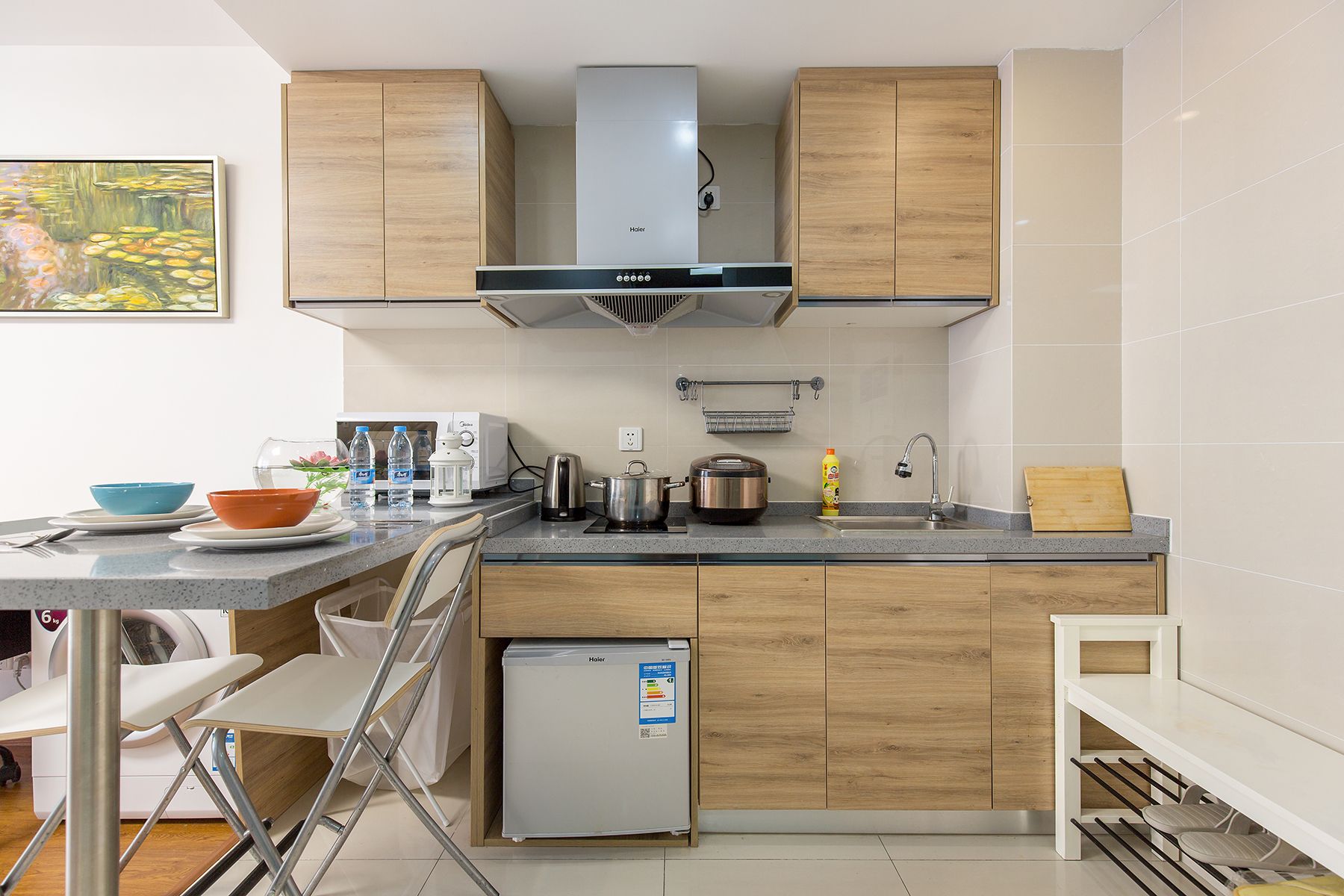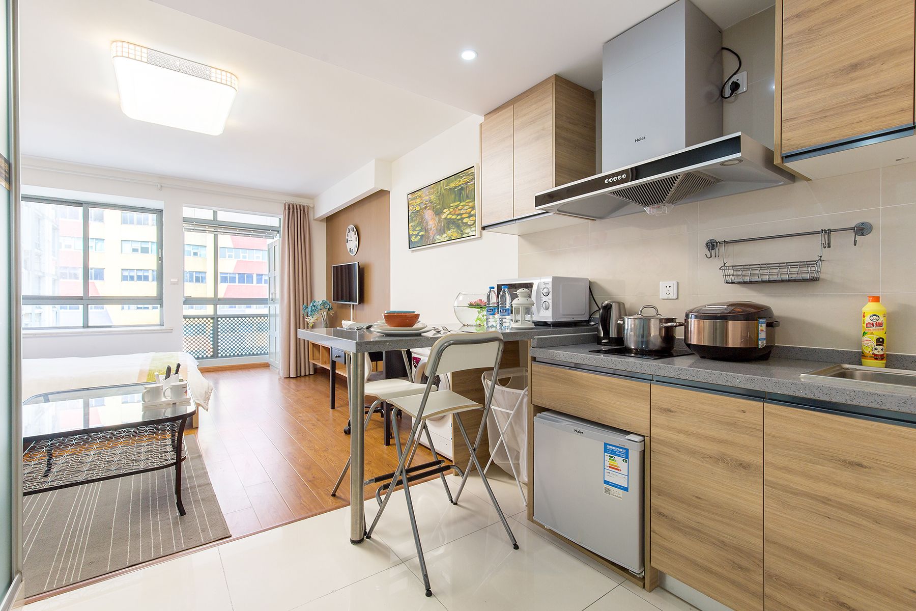 整个房间以简约为主题,在释放整个房间的空间感的同时,配备了必要的生活用品,包括一张双人床,一个简易的衣柜,书桌,茶几等,房间是独立的卫生间。当然还包括一个多功能厨房,可以在其中制作简单的午餐或者早餐。屋内还配置了洗衣机以及晾衣杆,能够满足您基本的生活所需,不论您是商务出差,还是在这附近生活,都非常便利。该房间非常适合独自一人,年轻的情侣居住。