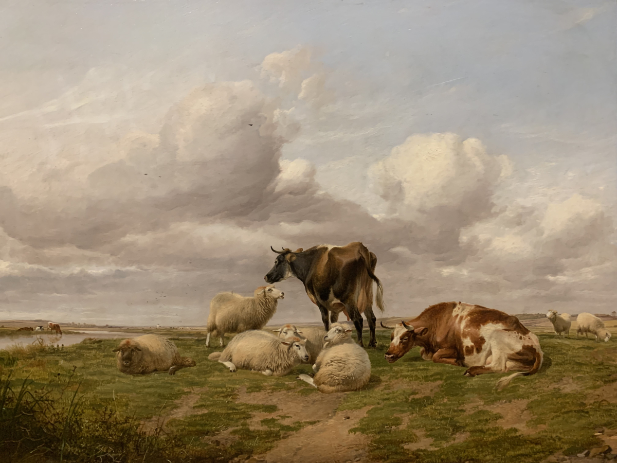 在这幅 Canterbury meadows油画前面,我驻足了很久。Copper创造的这副油画里的牛和养都很平静,除了一只羊给了观察者给了个不甚满意的眼神。