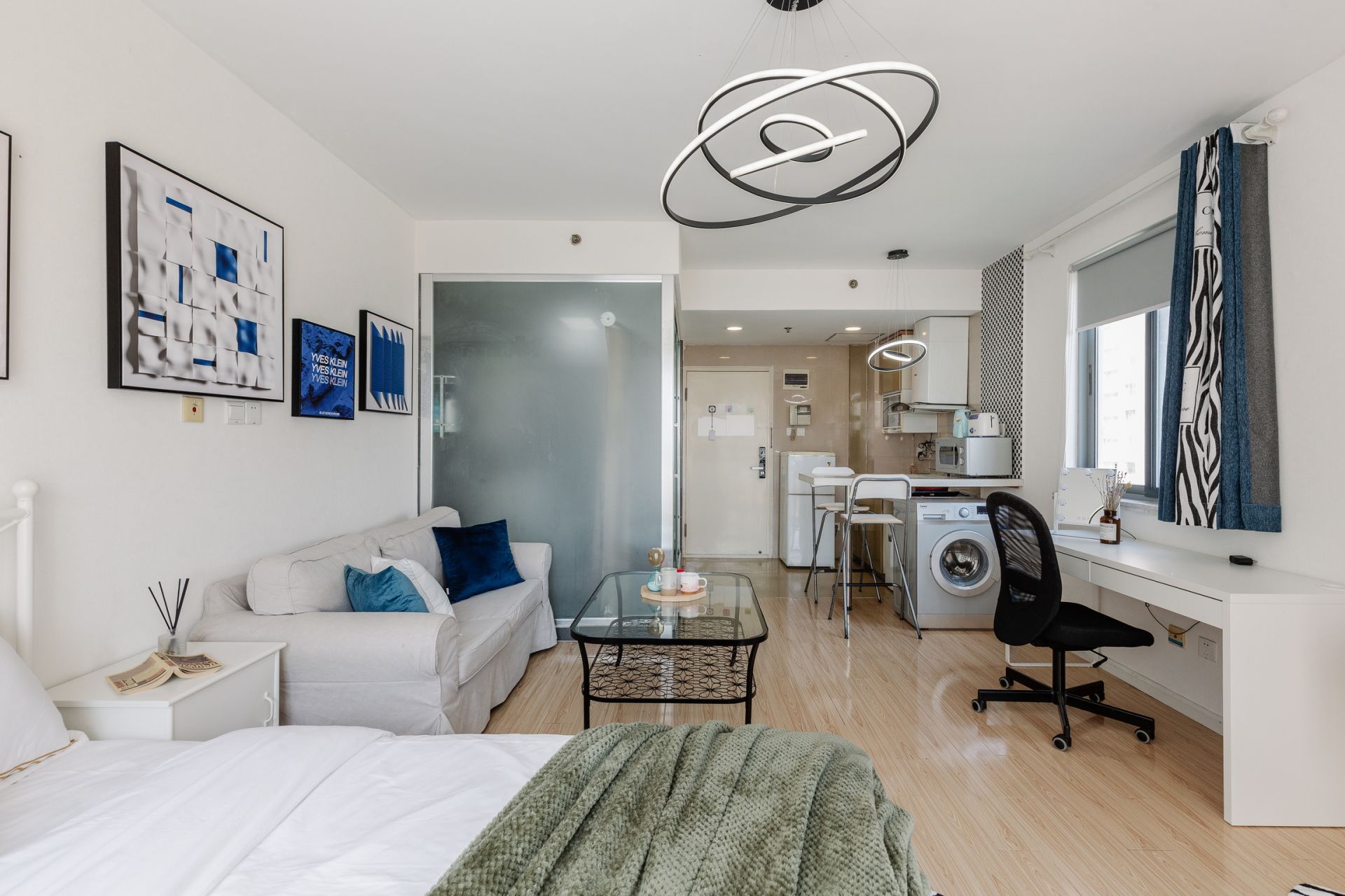 整个房间以简约为主题,在释放整个房间的空间感的同时,配备了必要的生活用品,包括一张1.5*2.0的双人床,一个简易的衣柜,书桌,茶几等,房间是独立的卫生间。当然还包括一个多功能厨房,可以在其中制作简单的午餐或者早餐。屋内还配置了洗衣机以及晾衣杆,能够满足您基本的生活所需,不论您是商务出差,还是在这附近生活,都非常便利。该房间非常适合独自一人,年轻的情侣居住。