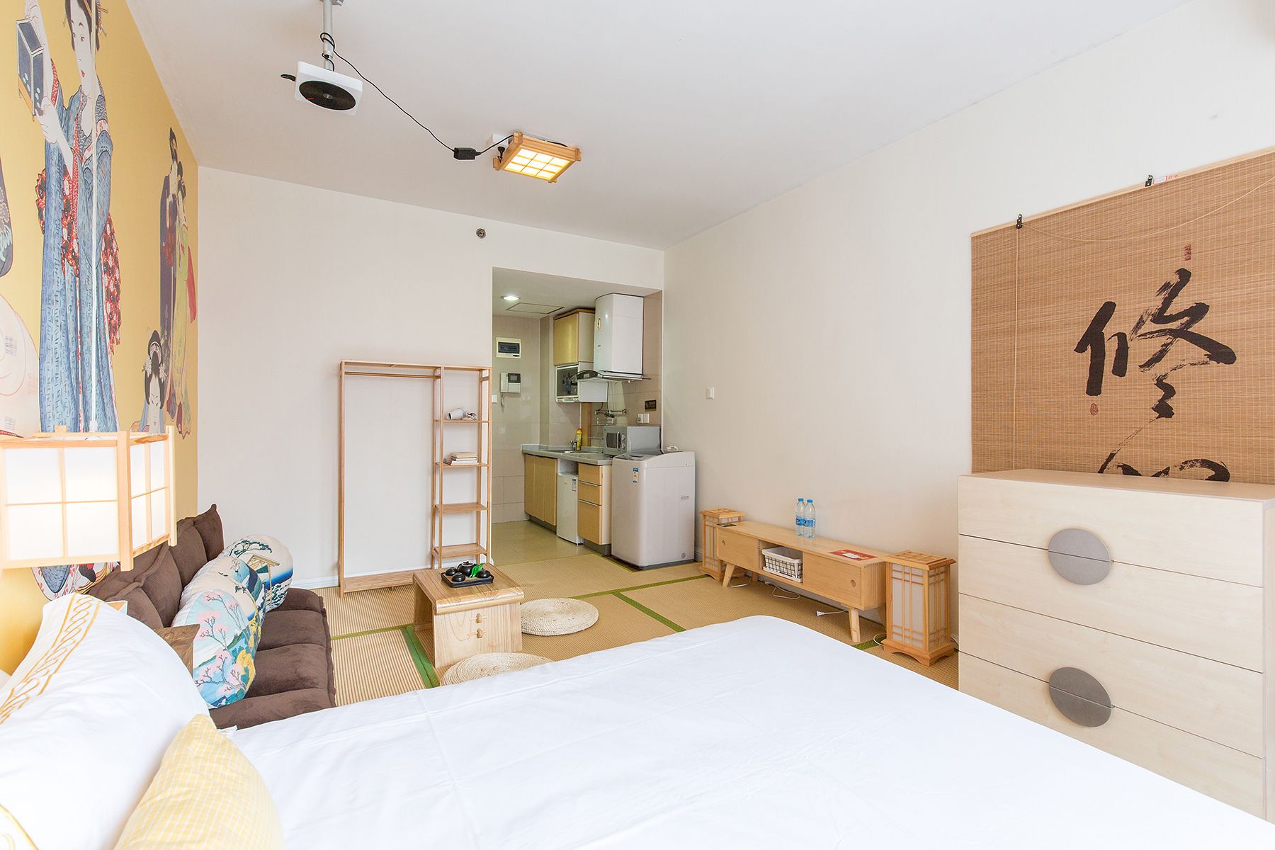 【和风·舞美】在这个尽有35平米的空间内孕育绽放升华,最终形成了这一间【和风·舞美】系列,淡然,优雅,严谨而不失幻想,这间全新装修的房间,转载着满满的异域风情,为您带来别致的体验。暖黄色的灯光,竹林般的装饰,我们尽可能得将整个空间搬到了曲径通幽的日式别院。尽管很小,但是房间配备了所有您所需要的。