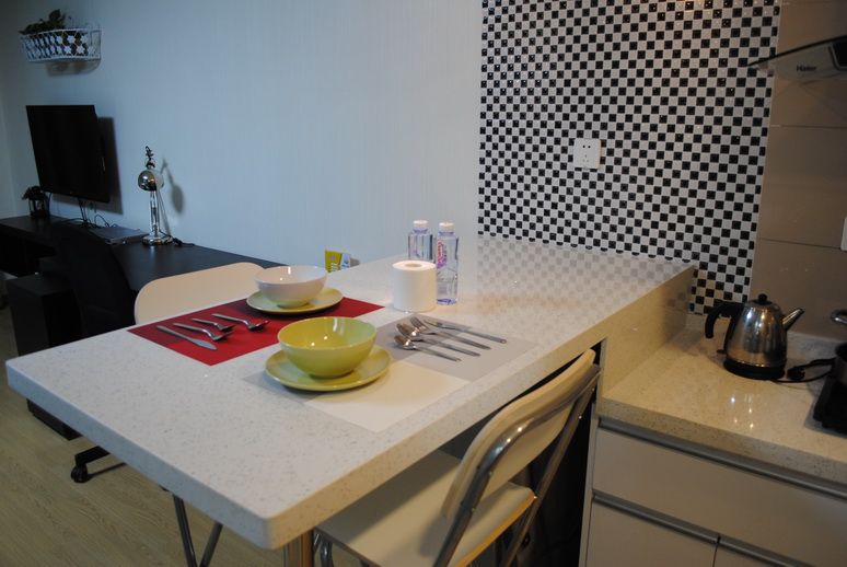 整个房间以简约为主题,在释放整个房间的空间感的同时,配备了必要的生活用品,包括一张1.5*2.0的双人床,一个简易的衣柜,书桌,茶几等,房间是独立的卫生间。当然还包括一个多功能厨房,可以在其中制作简单的午餐或者早餐。屋内还配置了洗衣机以及晾衣杆,能够满足您基本的生活所需,不论您是商务出差,还是在这附近生活,都非常便利。该房间非常适合独自一人,年轻的情侣居住。